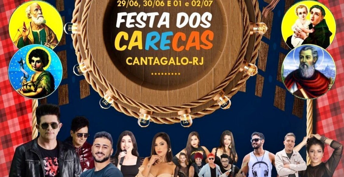 Banner oficial do evento.A tradicional Festa dos Carecas retorna em mais uma edição este ano, em Cantagalo, na Região Serrana do Rio. O evento acontecerá nos dias 29 e 30 de junho, 1 e 2 de julho na Praça Cônego Crescêncio Lanciotti, no centro da cidade. A festa comemora os dias de São Pedro, São João, Santo Antônio e São Paulo.