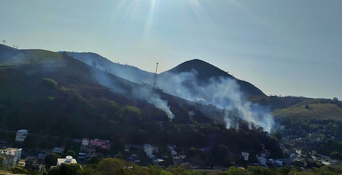 Ninguém aguenta mais! Um incêndio atinge uma área de vegetação ao redor do Centro de Cantagalo (RJ). Com a seca extrema, o fogo se espalhou rapidamente na tarde de quinta-feira (12/9).