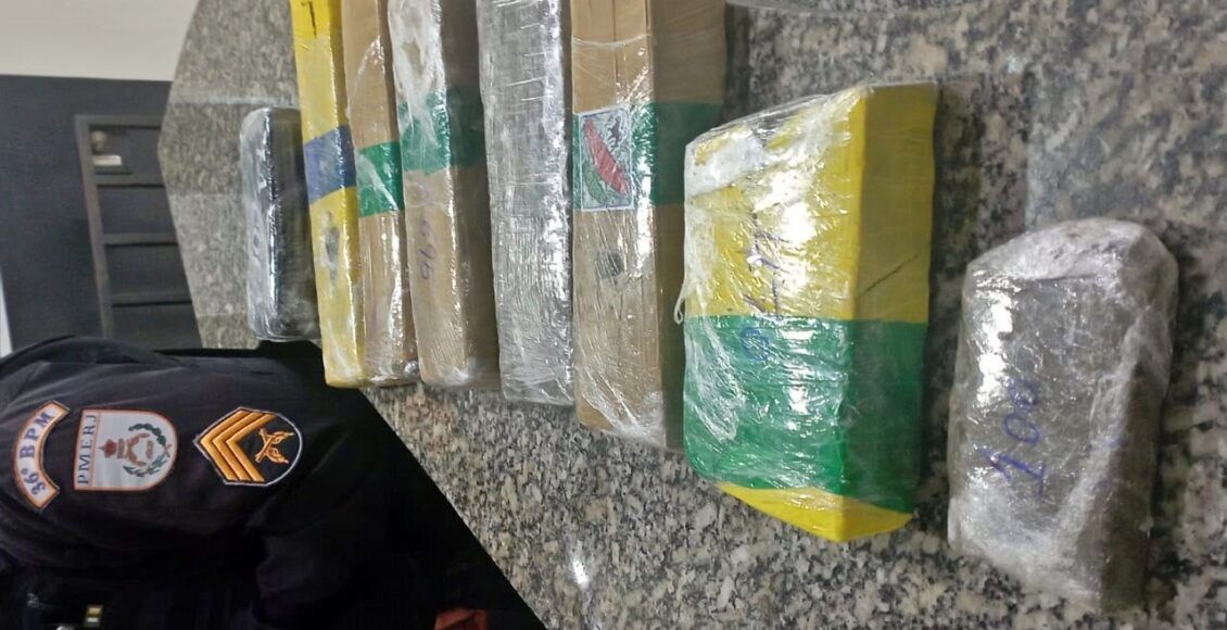De acordo com a PM, o suspeito vinha da cidade do Rio de Janeiro com 7 tabletes de maconha (4.173g) e 1 tablete de cocaína (993g).