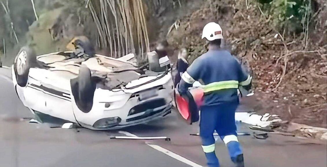 Um carro de passeio capotou na tarde de segunda-feira, 28/10, no KM 92 da RJ-116, próximo ao pedágio, entre Nova Friburgo e Bom Jardim.