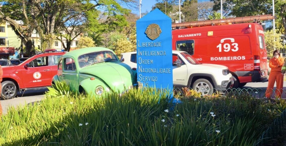 Um Fusca ficou preso em um dos canteiros da rotatória do Paissandu, em Nova Friburgo, na tarde de sábado (2/8). O incidente teria ocorrido após um embaraço envolvendo um Jeep.