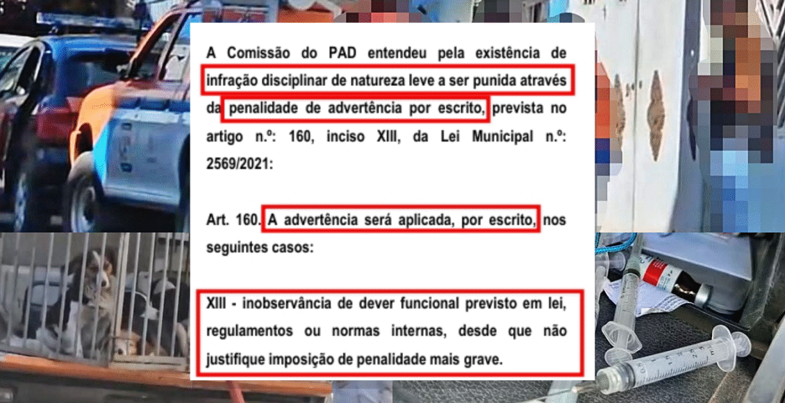 Na prática, isso significa que, para o Executivo, a conduta dos seis funcionários que, uniformizados e em viaturas oficiais da Prefeitura, aplicaram doses excessivas de sedativos em cães e os abandonaram em estradas rurais é considerada apenas uma “infração leve”. A decisão foi assinada pelo prefeito Leonan Melhorance e publicada no Diário Oficial.