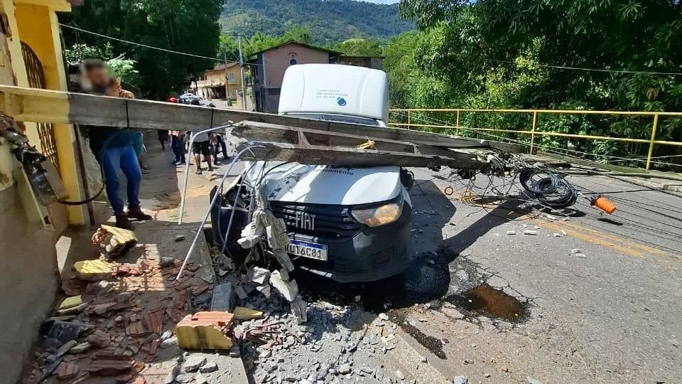 Créditos: Portal Jornada O trânsito ficou completamente bloqueado em Triunfo, distrito de Santa Maria Madalena, após um veículo da concessionária Rio+Saneamento bater em um poste e derrubá-lo, na terça-feira (9/12). Apesar do forte impacto, o motorista não se feriu.