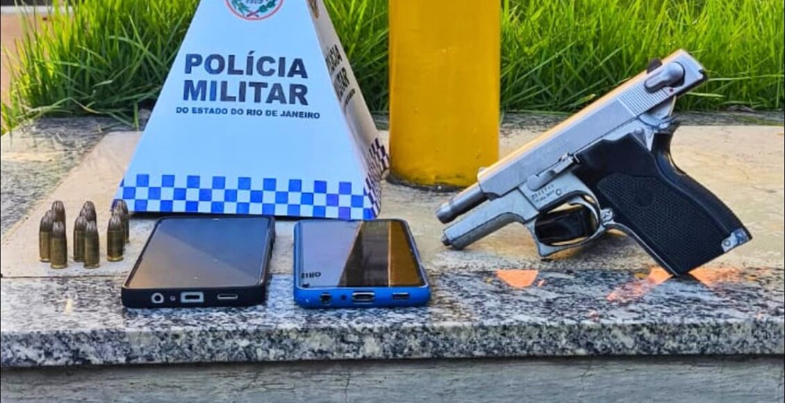 Um jovem de 19 anos, suposto integrante do tráfico de drogas ligado à facção criminosa, foi preso em flagrante na tarde de quarta-feira (25/12) por porte ilegal de arma de fogo e violência doméstica, na localidade da Ponte Seca, em Aperibé. A ocorrência foi atendida por equipes do 36º BPM após denúncia de que uma mulher estaria sendo agredida e ameaçada com uma arma pelo companheiro.