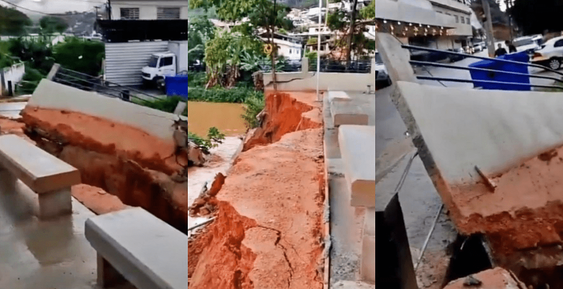 Uma praça recém-construída no bairro São Miguel, em Bom Jardim, desabou na tarde de segunda-feira (15/12) após chuva. Localizada à beira do rio, a estrutura cedeu, segundo mostra um vídeo gravado por morador, levantando preocupação sobre a segurança do local. Não houve vítimas.