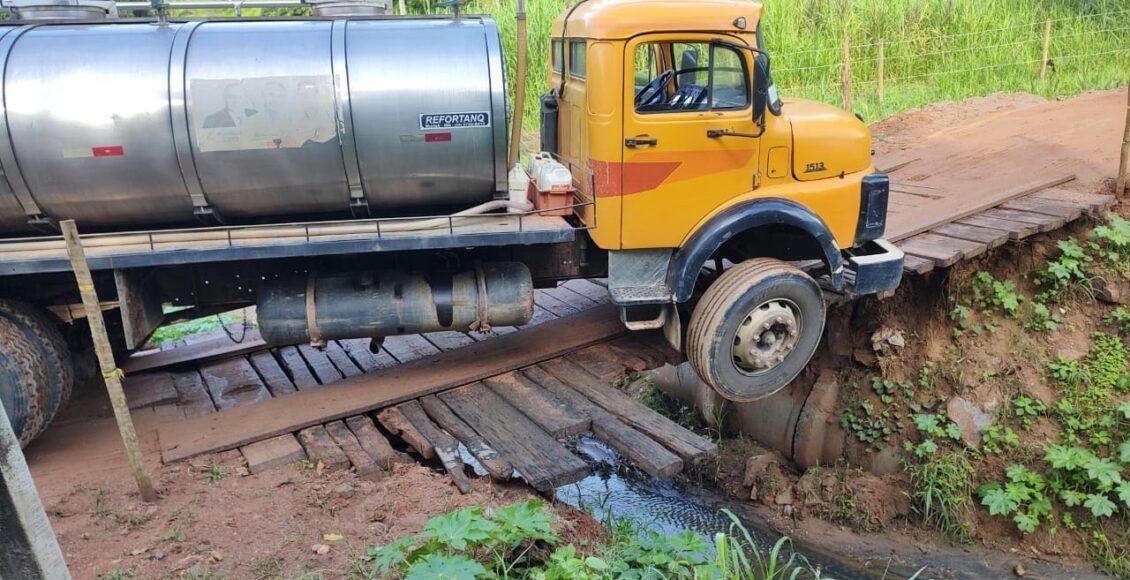 Na manhã de sexta-feira (30/01), um caminhão carregado com leite quase caiu no valão ao tentar atravessar a ponte estreita. “Infelizmente, tem acontecido direto. Os pranchões estão despregados e ninguém voltou para fiscalizar”, afirmou dona Marcilene.