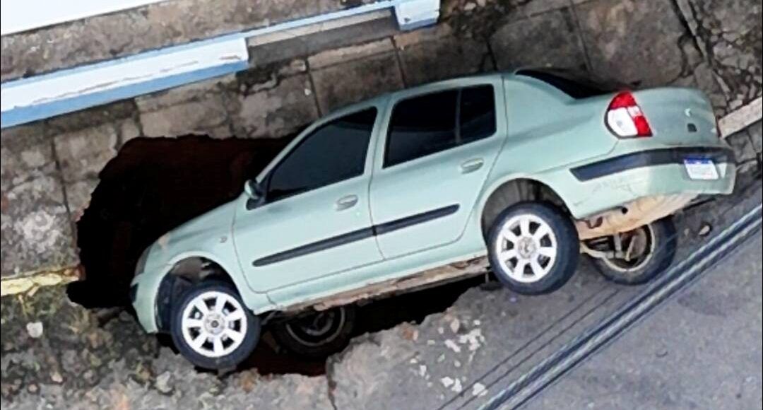 No início da noite de sábado (24/01), parte da Rua Georgino Dutra Werneck cedeu na esquina da antiga CEDAE, formando uma cratera que acabou engolindo um automóvel que estava estacionado no local.