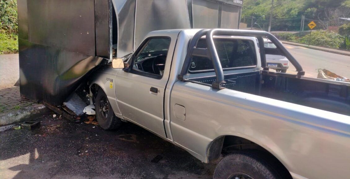 Ao descer o bairro São José, o motorista perdeu o controle da caminhonete e colidiu com o trailer, localizado em frente ao condomínio Mão de Luva.