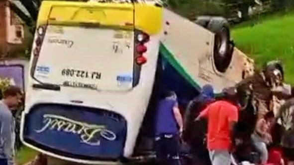Ônibus da Viação Brasil capota na BR-356, em Itaperuna, e deixa feridos