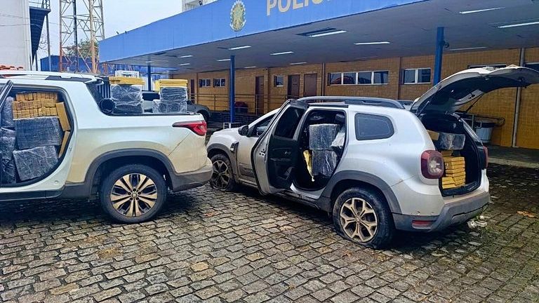 Ao todo, foram apreendidas 2,2 toneladas de maconha em três veículos, além de sete celulares e dinheiro. Os quatro suspeitos foram presos em flagrante, e a carga tinha como destino o Complexo do Alemão, na Zona Norte do Rio.