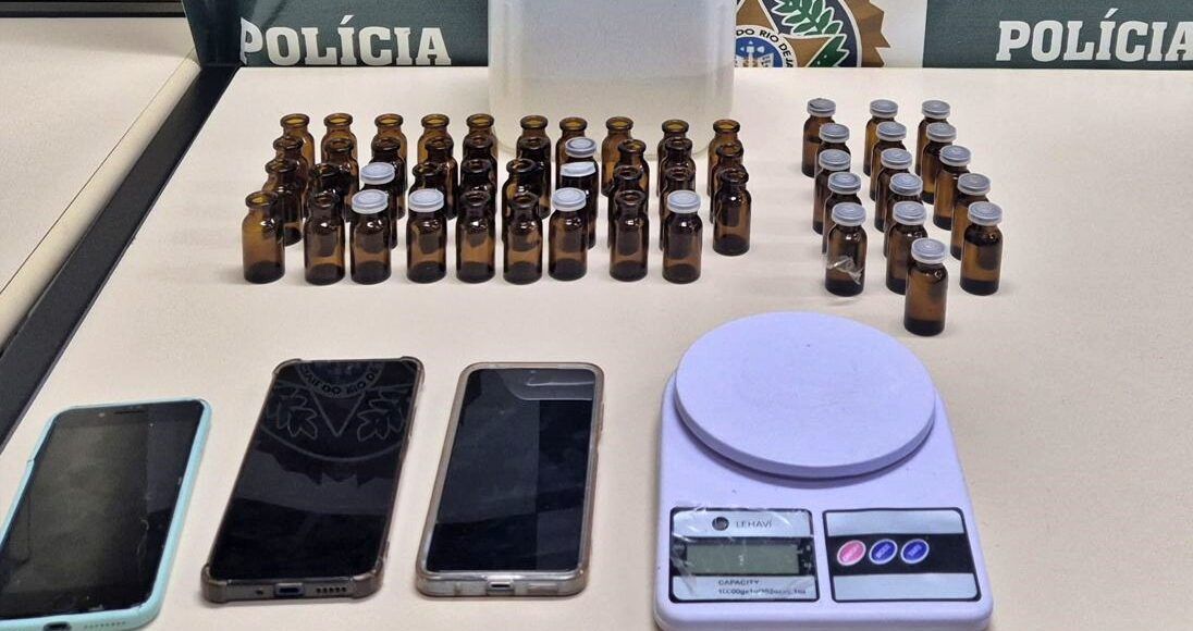 No interior da residência, os policiais encontraram um galão plástico contendo líquido suspeito, além de diversos recipientes de vidro, parte deles vazios e outros com substância semelhante, bem como uma balança de precisão. Após perícia, o material foi identificado como solvente organoclorado, totalizando cerca de 1.465 mililitros, substância comumente utilizada na fabricação da droga conhecida popularmente como “cheirinho da loló”.