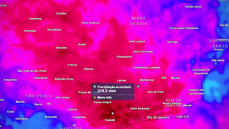 Outros estados do Sudeste também devem registrar impactos expressivos. Em São Paulo, a previsão aponta maiores acumulados no Vale do Paraíba, regiões de Campinas e Ribeirão Preto. Já em Minas Gerais, áreas do Alto Paranaíba, Oeste e Sul do estado estão entre as mais vulneráveis. Em partes desses estados, os acumulados totais podem atingir cerca de 315 mm, provocando transtornos urbanos e rodoviários.