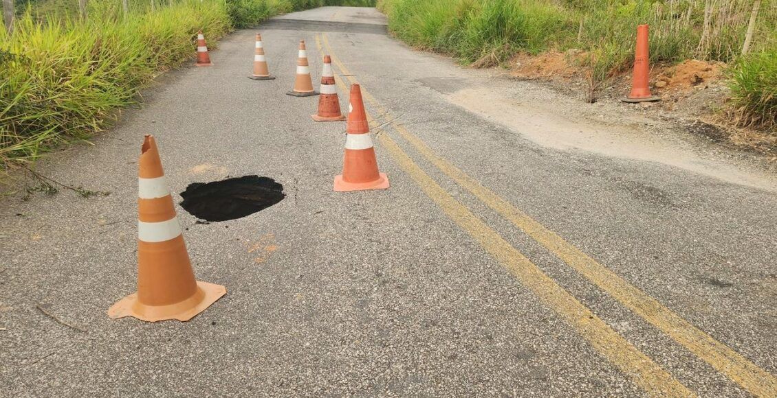 Cratera profunda se abre na RJ-182 e requer atenção em Santa Maria Madalena