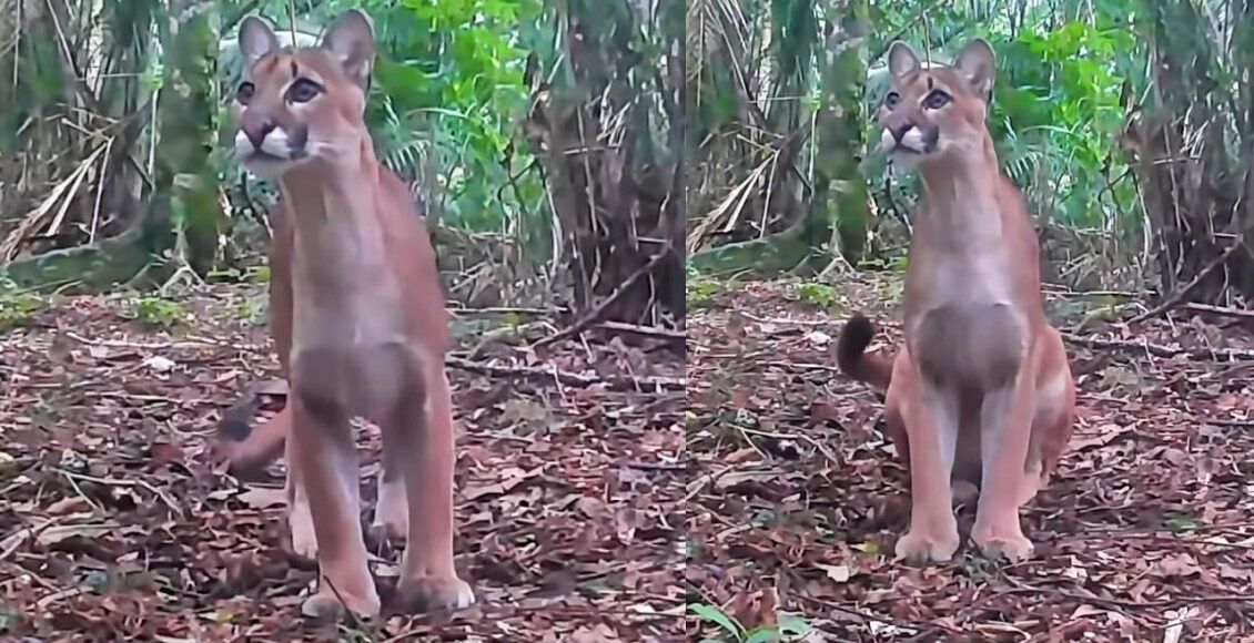 Onça-parda senta em frente à câmera e mostra sua beleza em Nova Friburgo