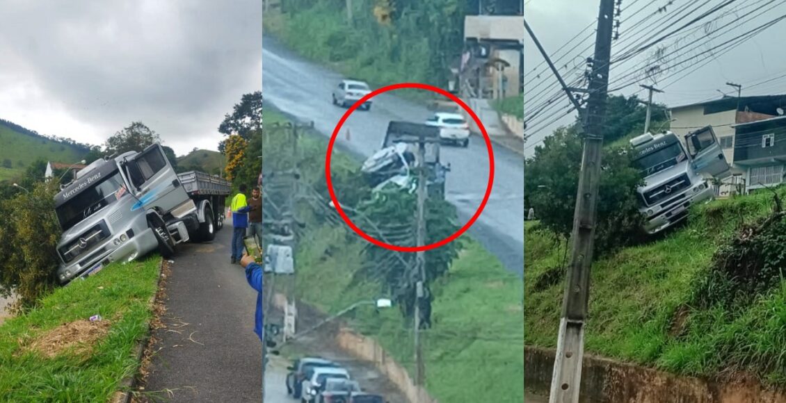 Um caminhão saiu da pista da RJ-160 – na altura da Altec – e ficou preso em um talude, à beira de cair sobre a Rua Antônio Ribeiro de Moraes, em Cordeiro. O incidente aconteceu por volta das 13h de sexta-feira (10/04).